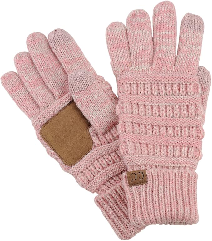 These C.C Unisex Cable Knit Warm Winter Anti-Slip Touchscreen Gloves are available in many pink shades and pink design variants, including single, 2-tone and 3-tone versions. The gloves are crafted from 100% soft acrylic, ensuring a comfortable and stretchy fit for most hand sizes. The gloves feature SmartTips technology on the thumb and index fingers, allowing for seamless touchscreen use. Additionally, the faux suede palm provides an anti-slip grip, making these gloves both practical and stylish.